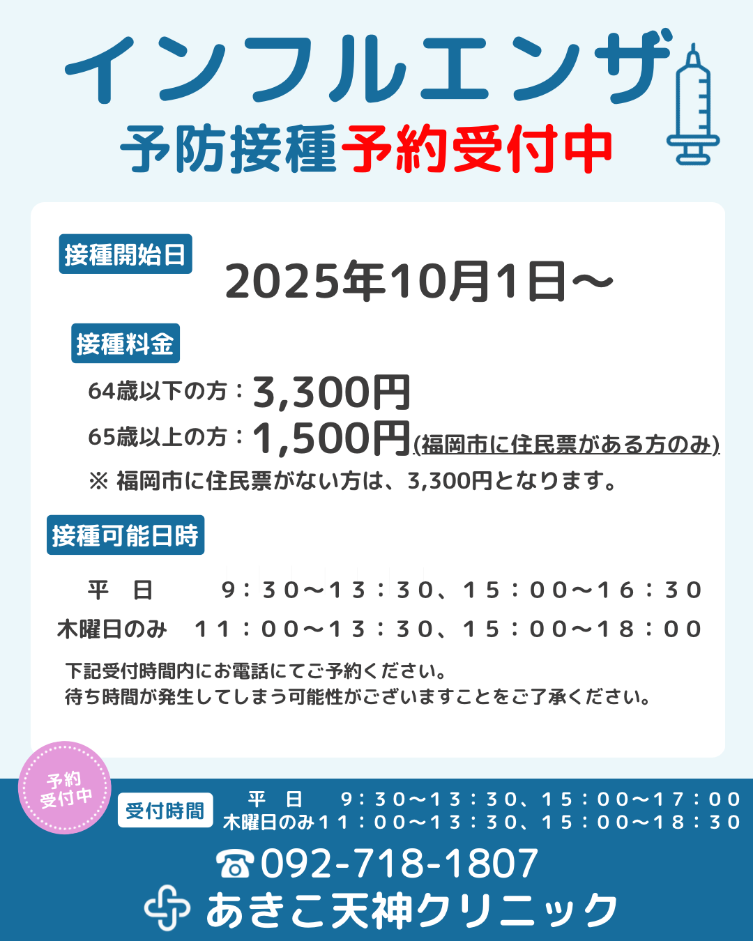 2025年度インフルエンザ予防接種予約受付のお知らせ