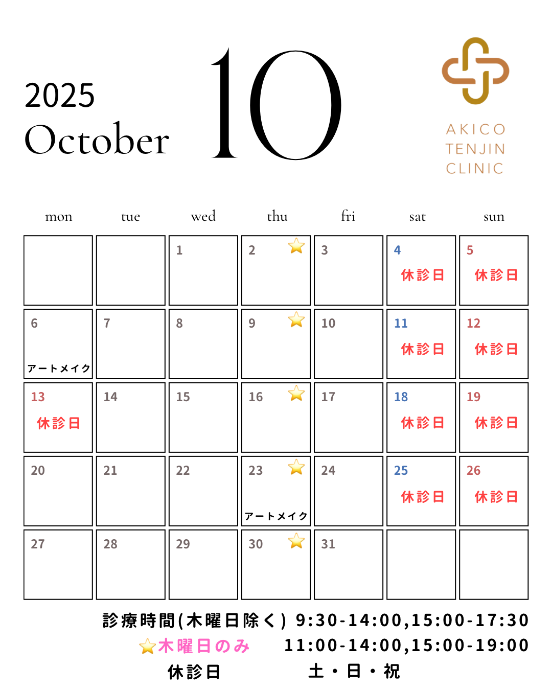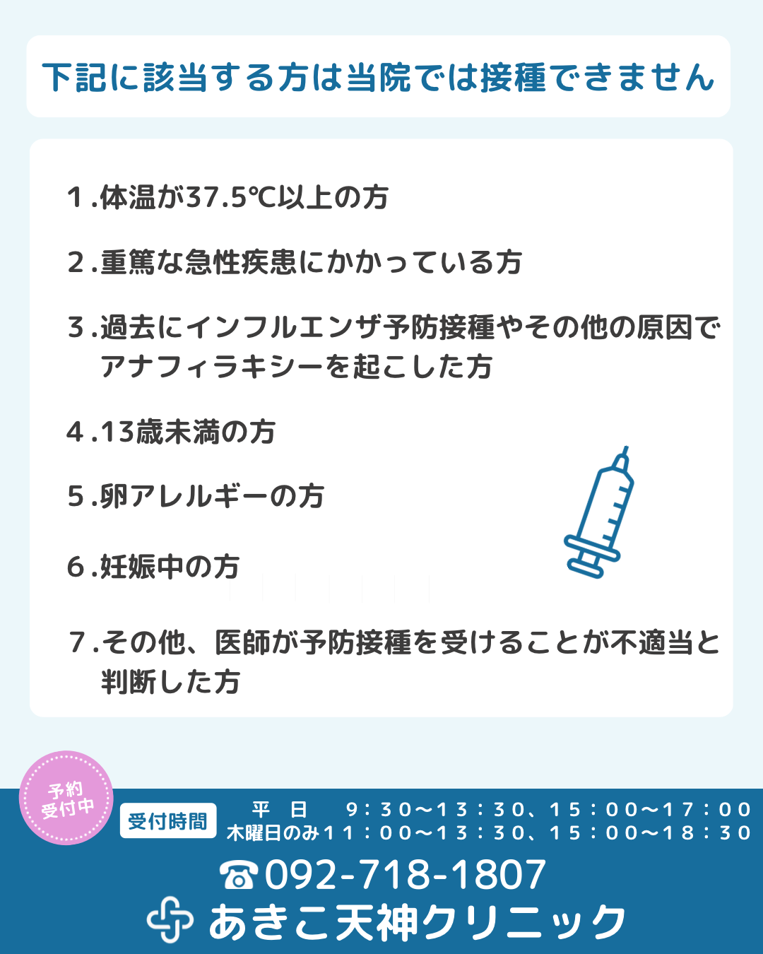 いつもあきこ天神クリニックをご愛顧いただき、誠にありがとうございます。