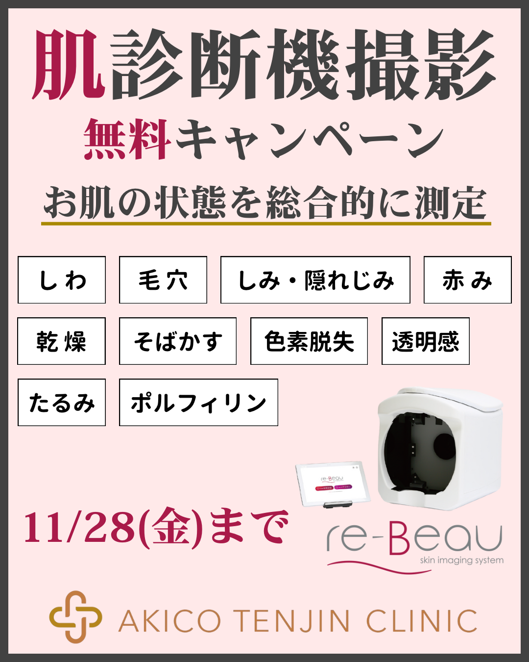 11/28(金)まで、肌診断機撮影の無料キャンペーンを行います✨