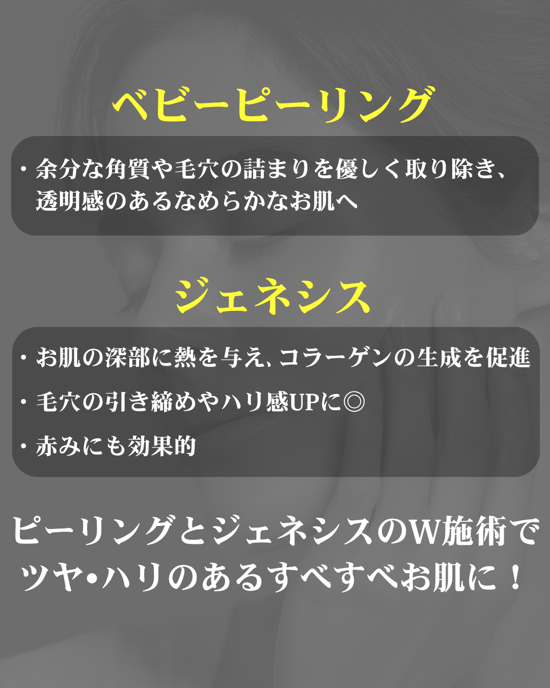 ピーリングとジェネシスのW施術でツヤ・ハリのある